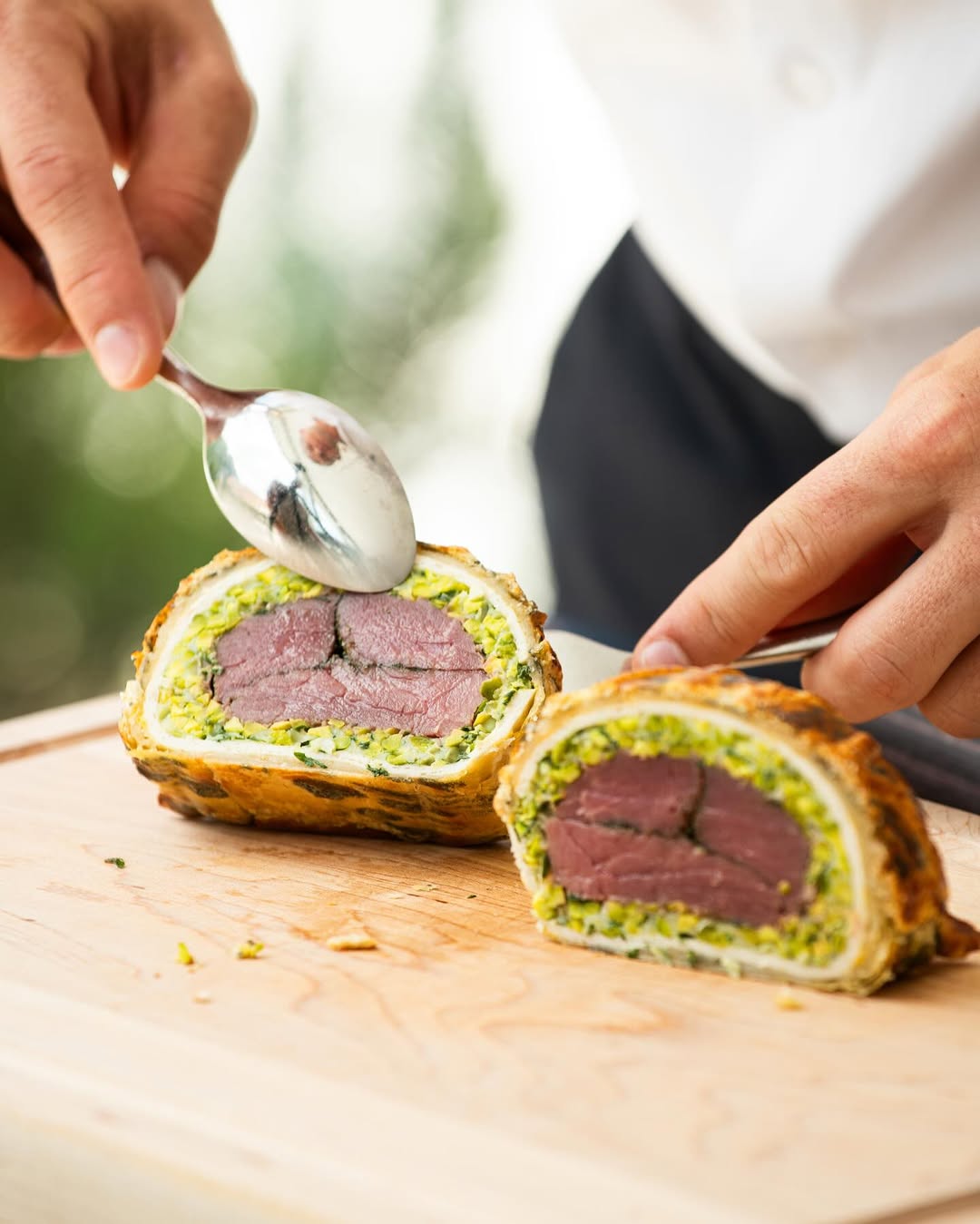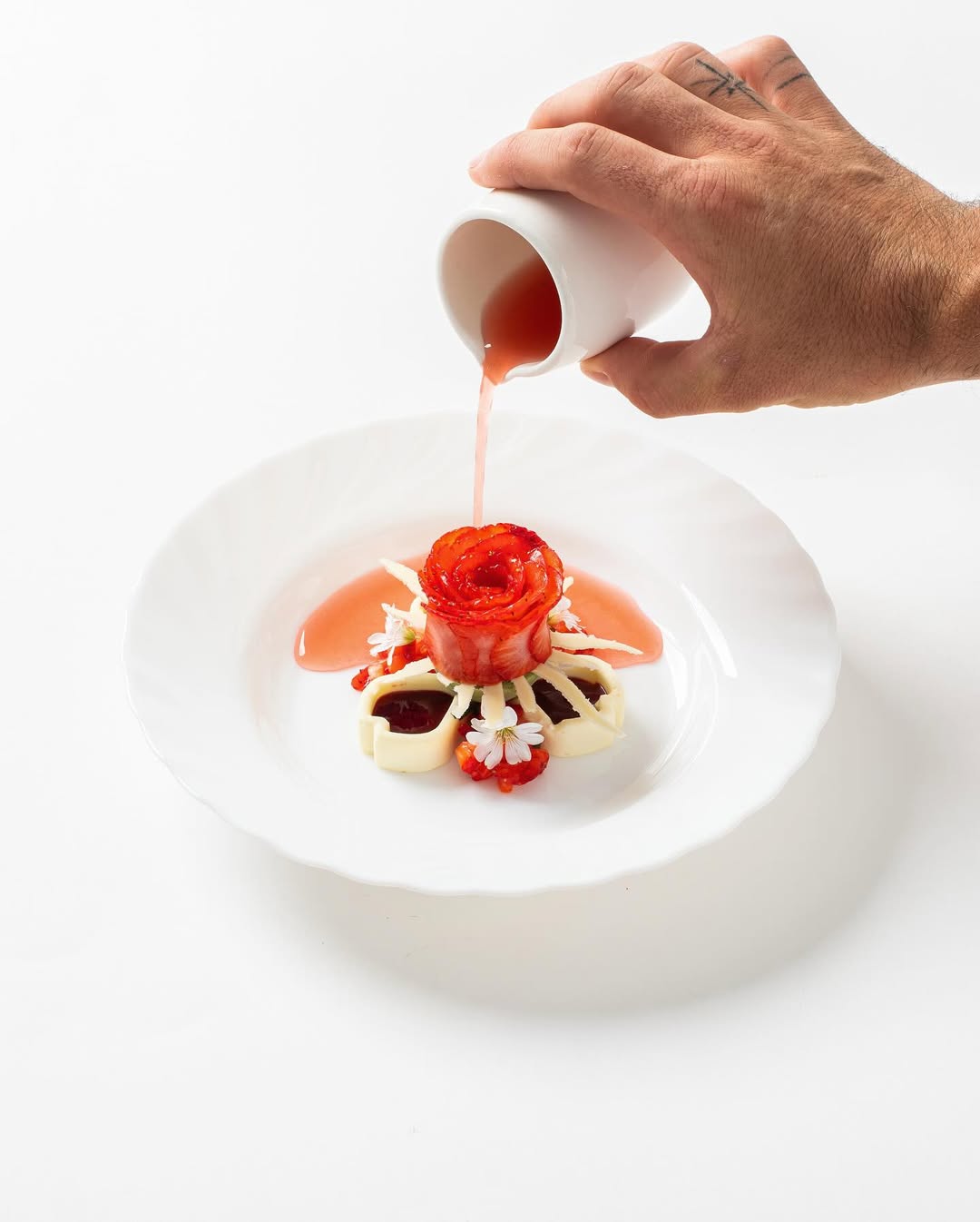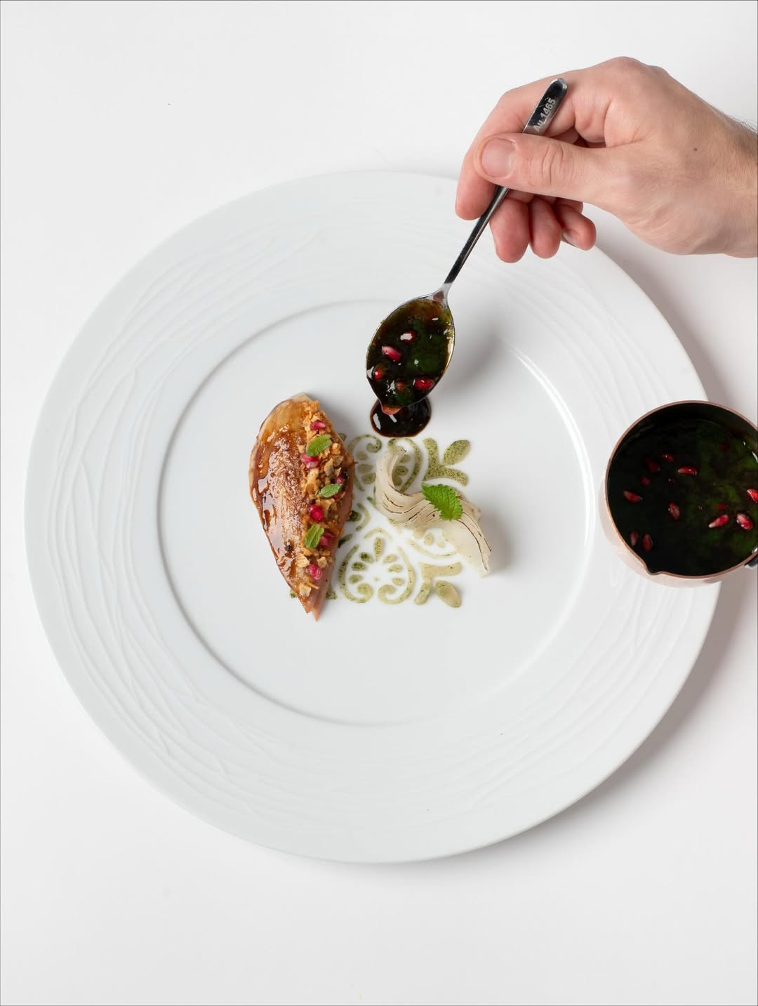 Dès le début de cette collaboration, Mariano Buda impose sa vision d’une cuisine centrée sur les produits de terroir. Ainsi, il s’allie avec les meilleurs fournisseurs de viande de la région, travaille les poissons du lac Léman, ainsi que les fruits et légumes élevés en permaculture dans la plaine du Rhône. Alliant techniques et cultures italiennes et françaises, il sublime sa matière première en en respectant strictement la saisonnalité. L’inspiration du Chef émane essentiellement du paysage et de la nature environnante qui font de l’emplacement du restaurant Au 1465 un établissement privilégié. La salle du restaurant épurée, toute en lumière avec sa terrasse les pieds l’eau, reflète avec cohérence le style de Mariano Buda. Ici, s’allient la passion de l’esthétique et la mise en exergue de saveurs pour une expérience immersive destinée aux épicuriens.